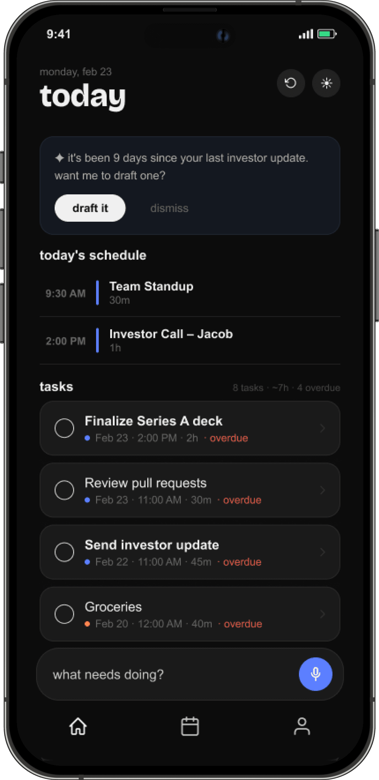 ✦ you have 3 overdue tasks. want me to reschedule them?